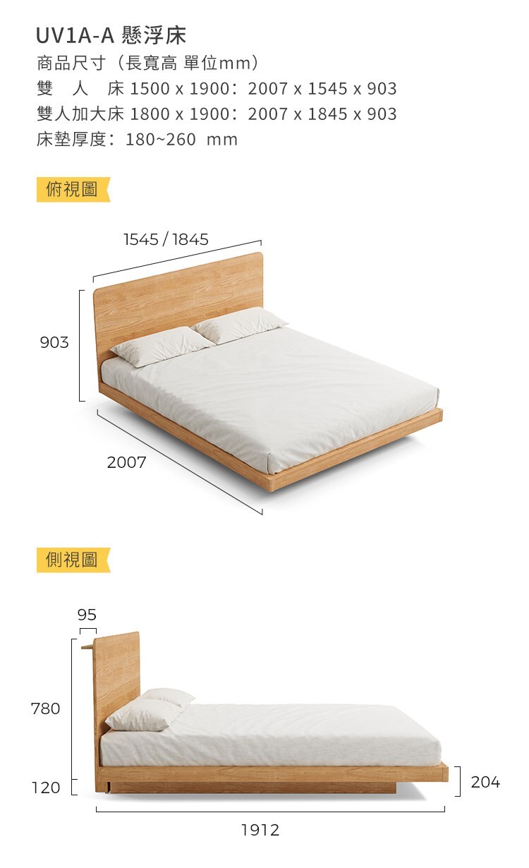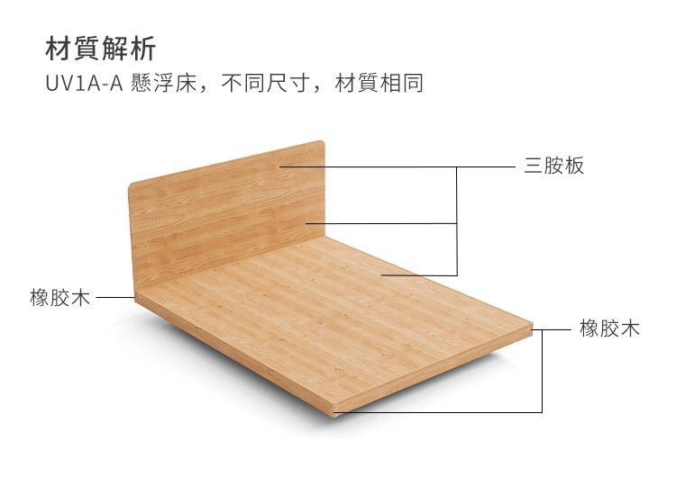 *注意:以下為情境示意圖,實際商品款式為空島原木色雙人150x190懸浮床架(無燈款) UV1A