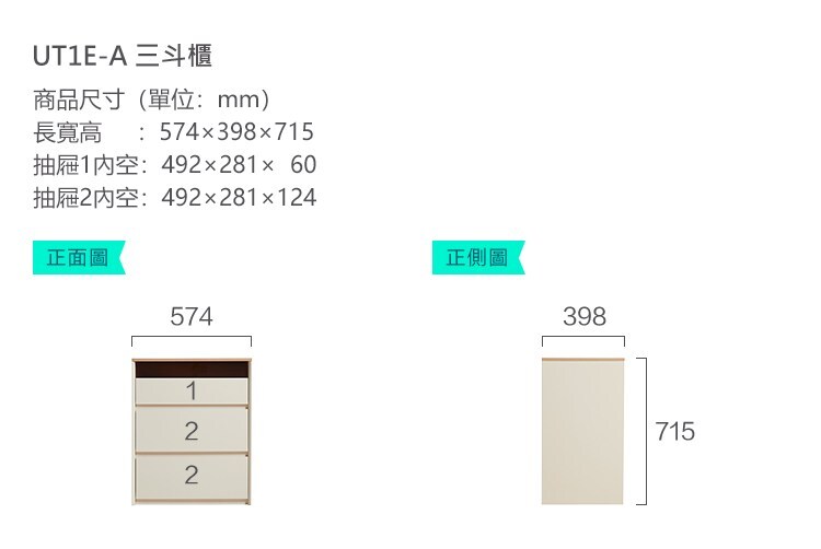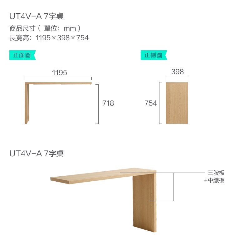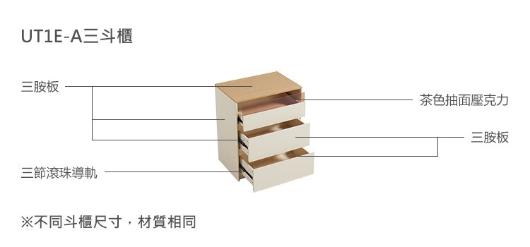 組合內容:UT1E-A-三斗櫃+UT4V-A-7字桌
