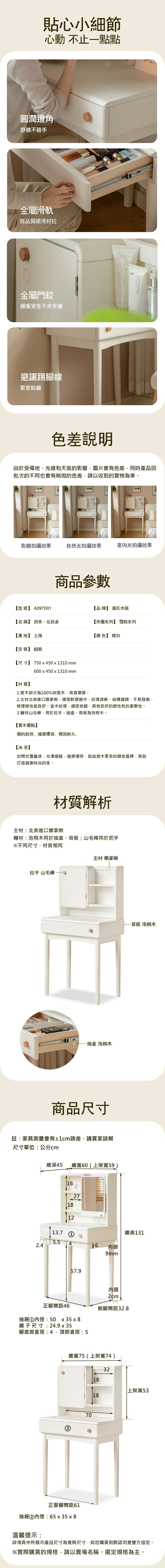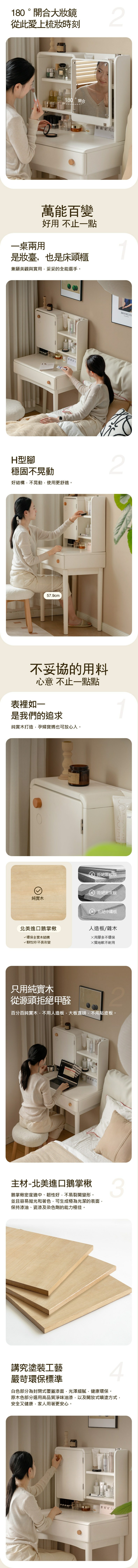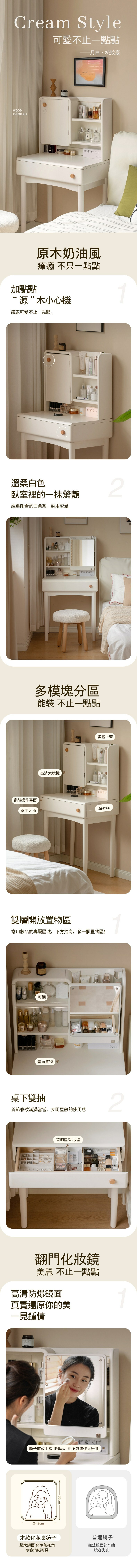 *注意:以下為情境示意圖,實際商品款式為奶芙奶油風實木收納翻鏡化妝桌0.6M A297D01