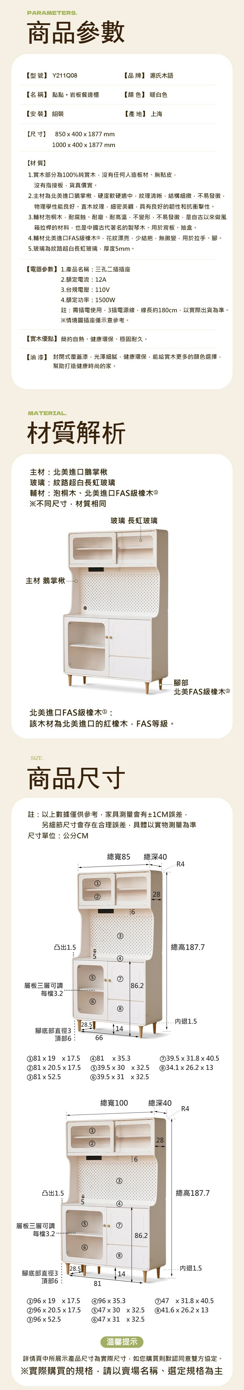 *注意:以下為情境示意圖,實際商品款式為椰奶奶油風實木洞洞板儲物岩板餐櫃0.85M Y211Q08