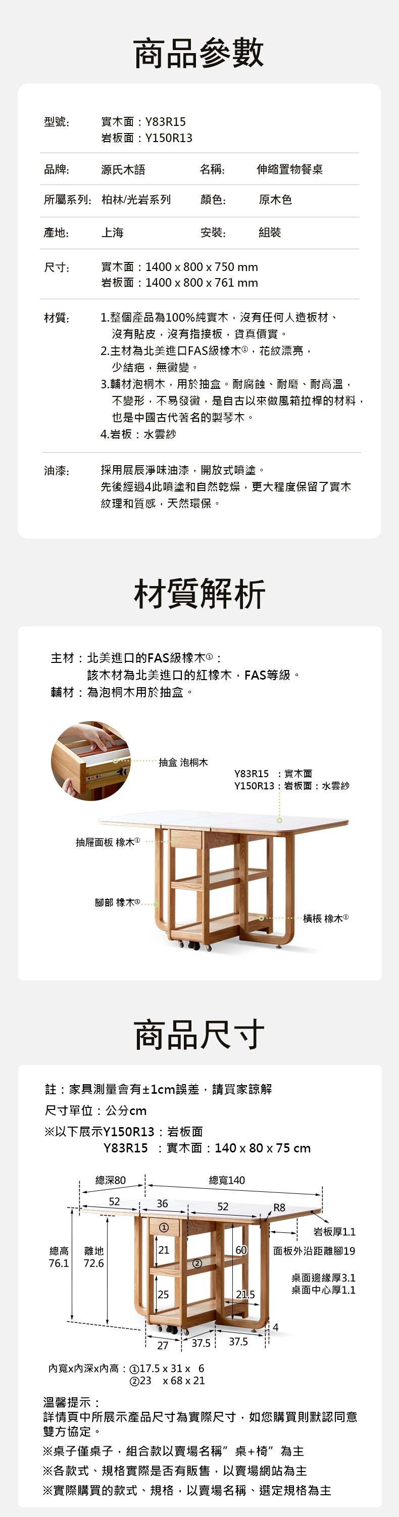 *注意:以下為情境示意圖,實際商品款式為光岩橡木實木原木色岩板摺疊收納餐桌1.4M Y150R13 +4椅凳 Y83T02