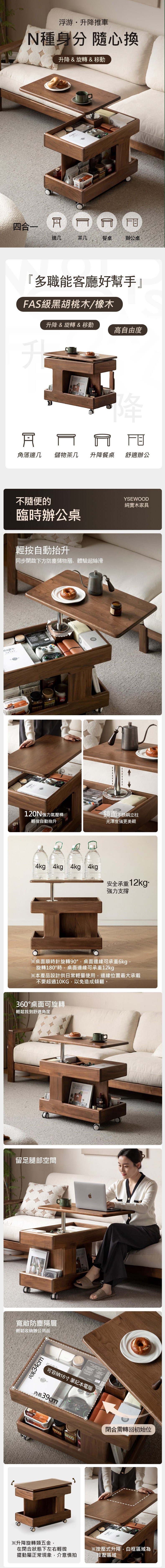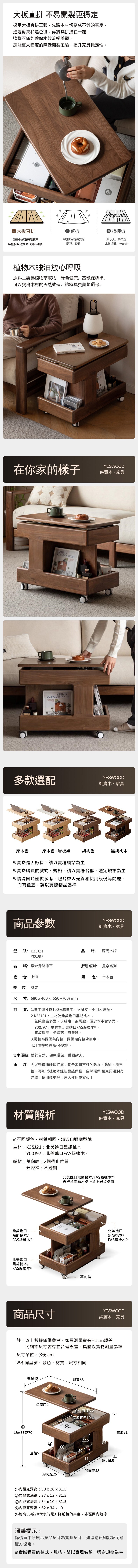 *注意:以下為情境示意圖,實際商品款式為隨心換橡木實木原木色可移動旋轉升降茶几邊桌0.6M Y00J97
