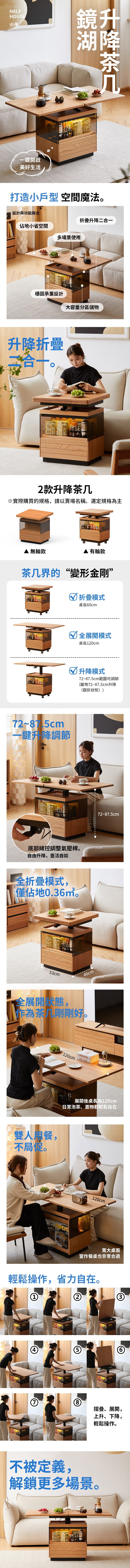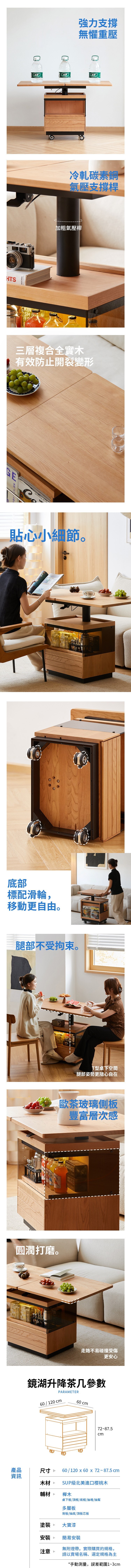 *注意:以下為情境示意圖,實際商品款式為鏡湖櫻桃木可移動摺疊升降茶几 1.2M
