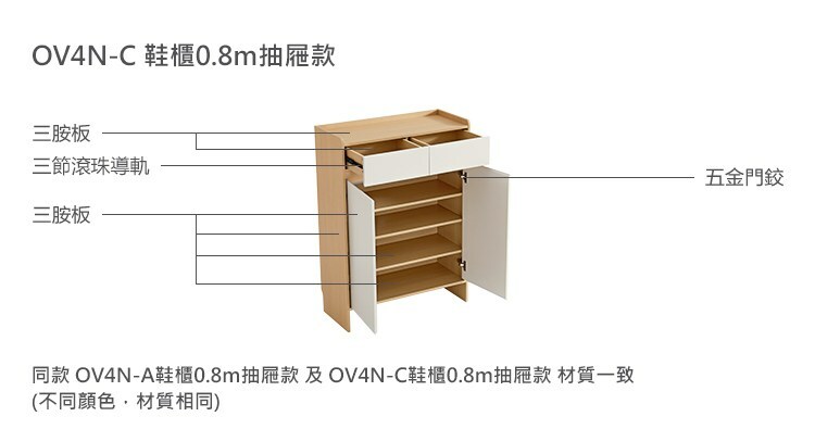 *注意:以下為情境示意圖,實際商品款式為簡約雙色抽屜二門鞋櫃0.8M OV4N 原木色