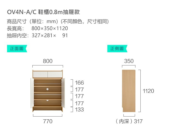 *注意:以下為情境示意圖,實際商品款式為簡約雙色抽屜二門鞋櫃0.8M OV4N 灰木色
