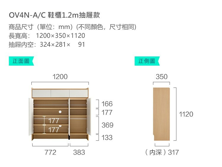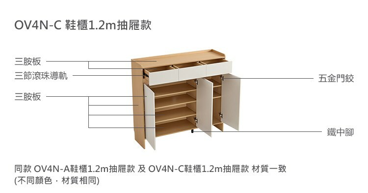 *注意:以下為情境示意圖,實際商品款式為簡約雙色抽屜三門鞋櫃1.2M OV4N 灰木色