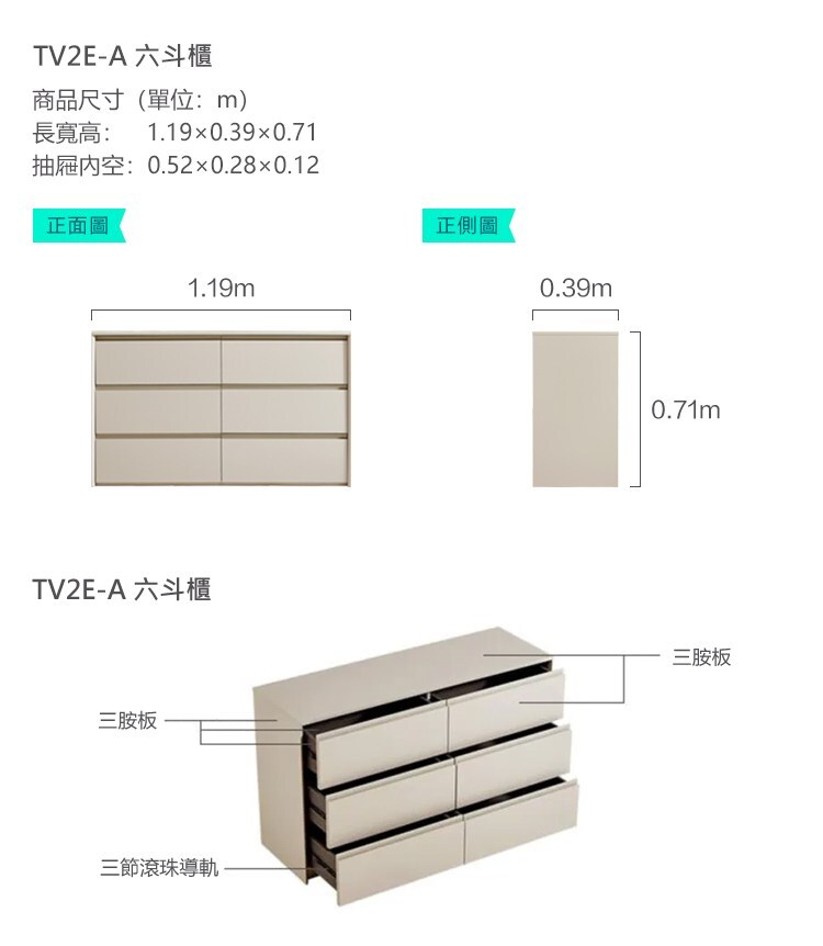 *注意:以下為情境示意圖,實際商品款式為現代簡約抽屜六斗櫃 TV2E