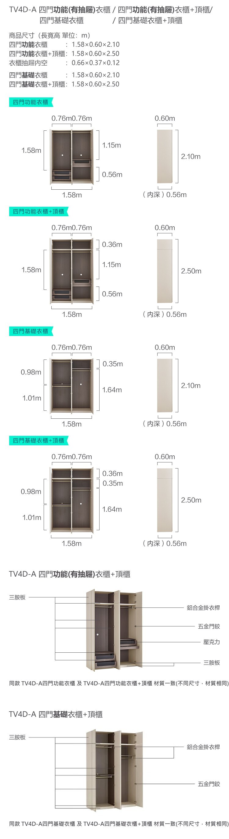 *注意:以下為情境示意圖,實際商品款式為現代簡約四門衣櫃1.58M TV4D