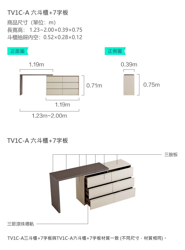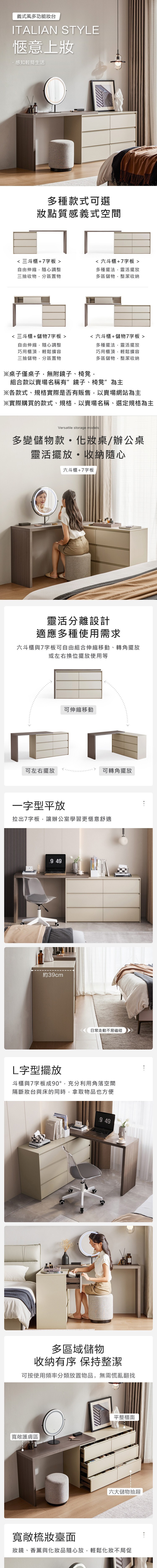 *注意:以下為情境示意圖,實際商品款式為現代簡約六斗櫃伸縮化妝桌 TV1C