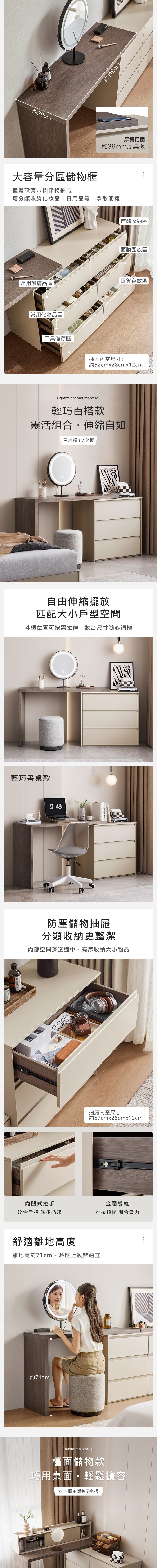 *注意:以下為情境示意圖,實際商品款式為現代簡約三斗櫃伸縮化妝桌+化妝鏡 TV1C