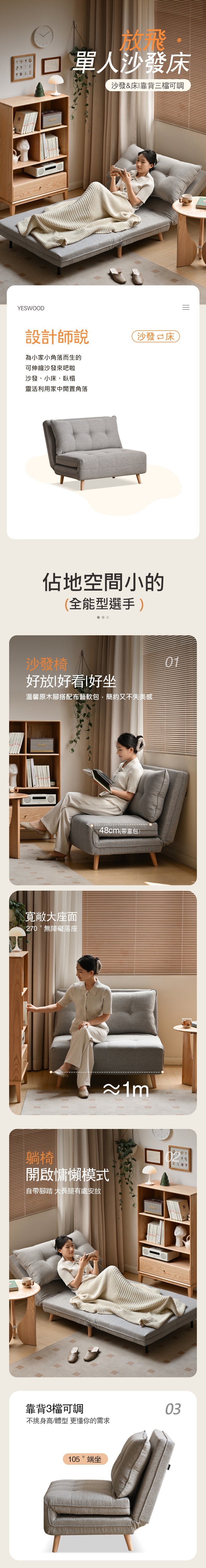 *注意:以下為情境示意圖,實際商品款式為現代簡約三檔可調單人沙發床 S0415 深藍色
