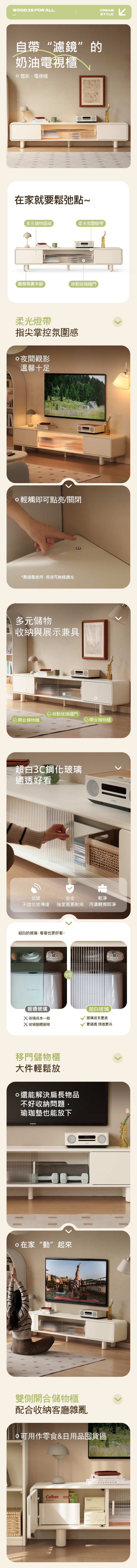 *注意:以下為情境示意圖,實際商品款式為雪影奶油風橡膠木實木滑門電視櫃2.2M Y246N01