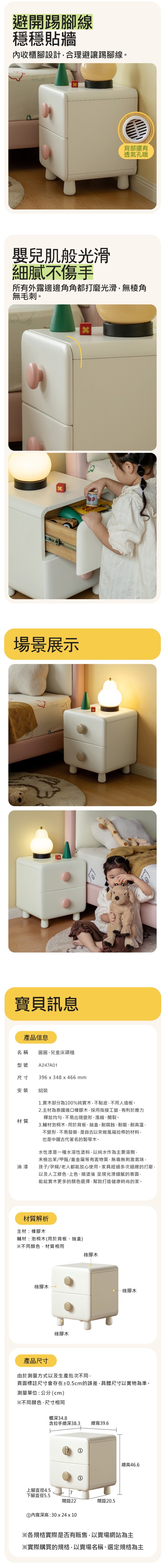 *注意:以下為情境示意圖,實際商品款式為圓圓奶油風橡膠木實木兒童床頭櫃0.39M A247A01 奶咖