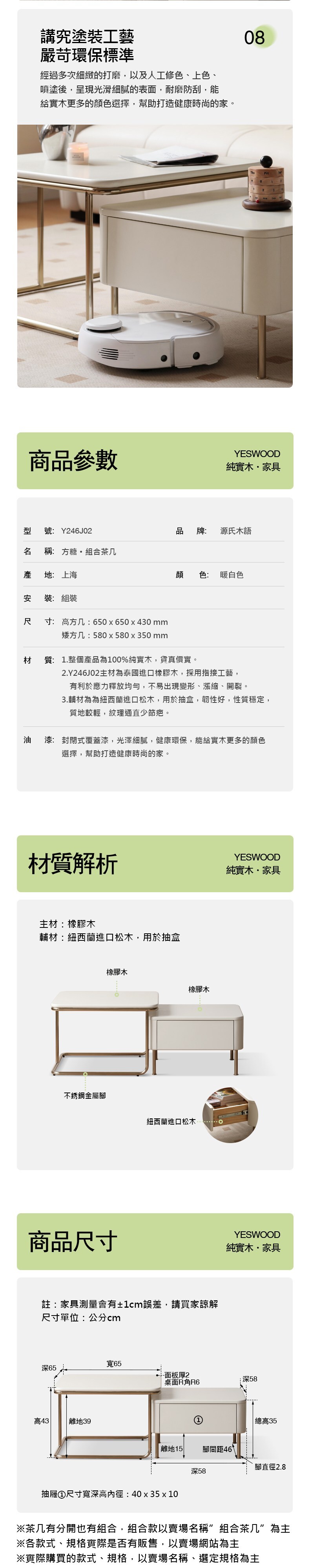 *注意:以下為情境示意圖,實際商品款式為百安卡奶油風橡膠木實木抽屜收納矮茶几O.58M Y246J02