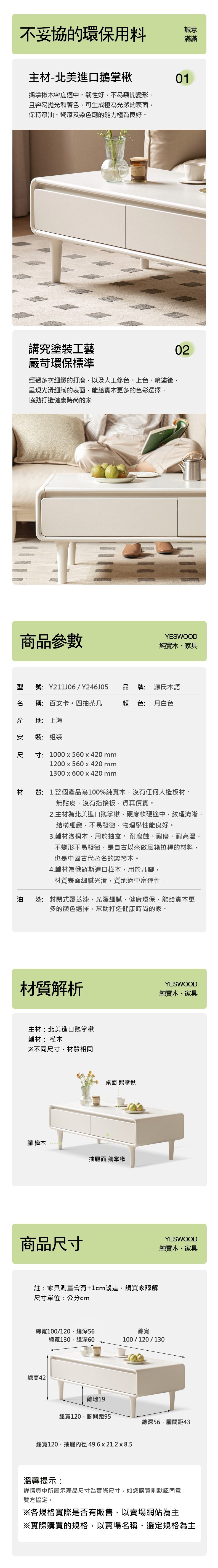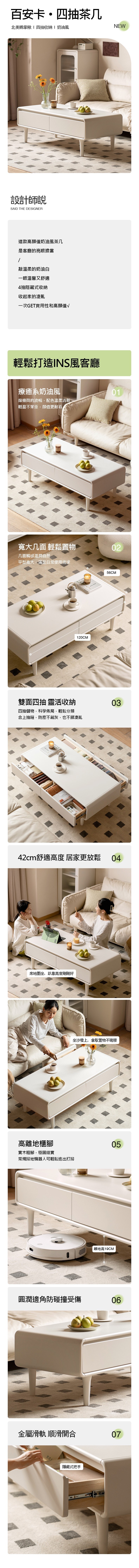 *注意:以下為情境示意圖,實際商品款式為百安卡奶油風橡膠木實木四抽茶几1.3M Y246J05