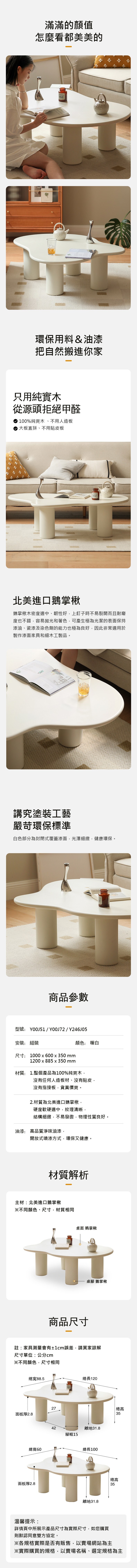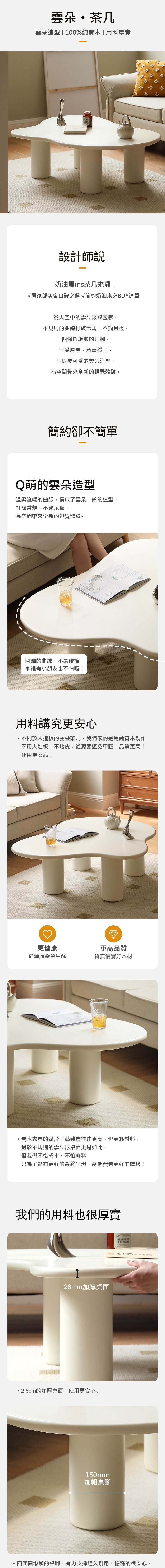 *注意:以下為情境示意圖,實際商品款式為雲朵奶油風橡膠木實木茶几1M Y246J06