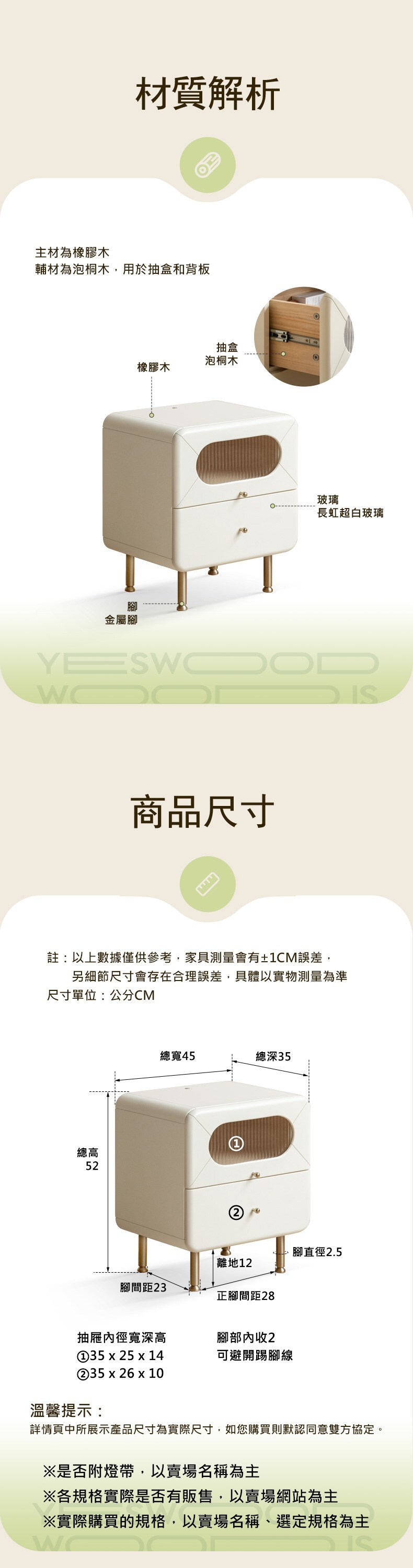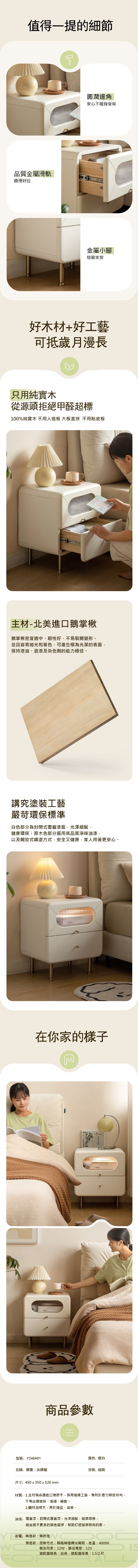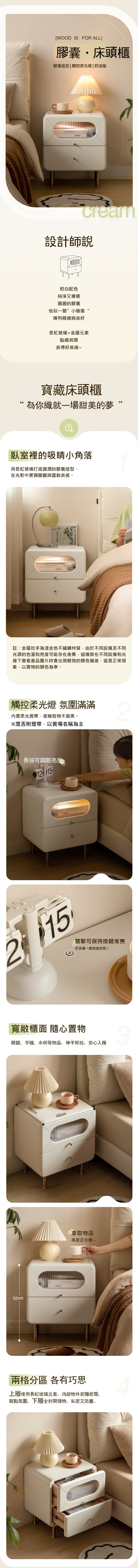 *注意:以下為情境示意圖,實際商品款式為膠囊奶油風橡膠木實木雙抽床頭櫃0.45M(無燈款) Y246A01