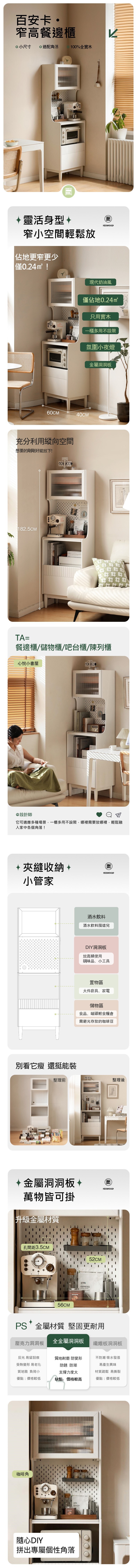 *注意:以下為情境示意圖,實際商品款式為百安卡奶油風橡膠木實木高窄款岩板收納餐櫃0.6M Y246Q04