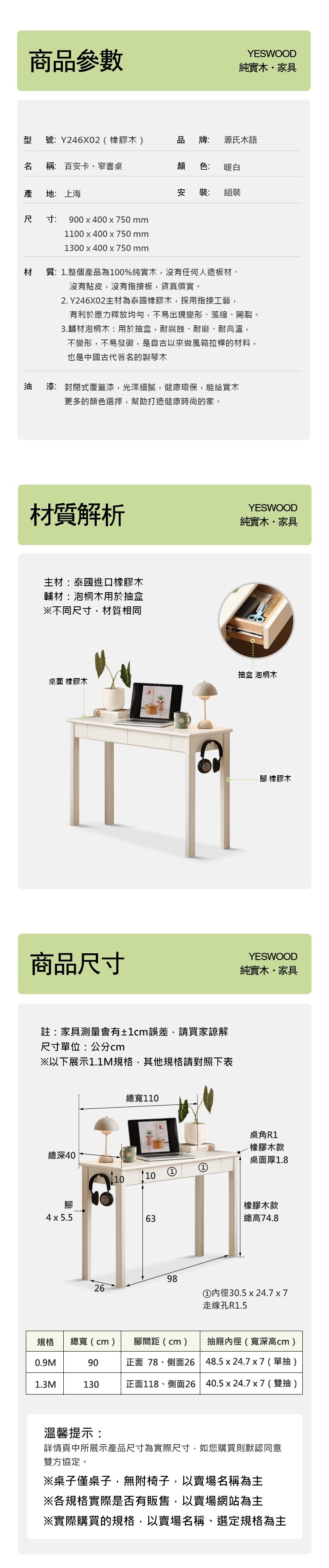 *注意:以下為情境示意圖,實際商品款式為百安卡橡膠木實木雙抽書桌1.3M Y246X02