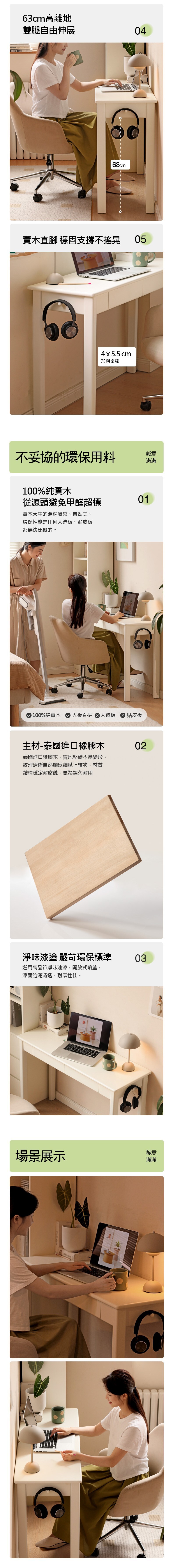 *注意:以下為情境示意圖,實際商品款式為百安卡橡膠木實木雙抽書桌1.1M Y246X02