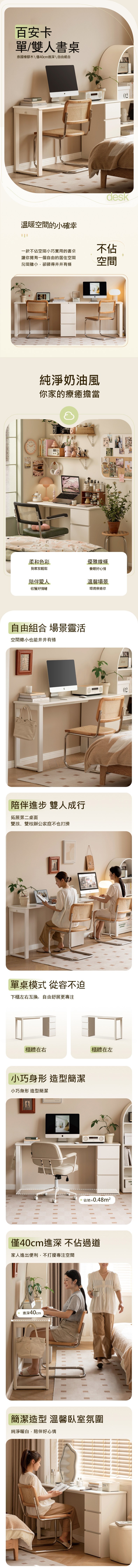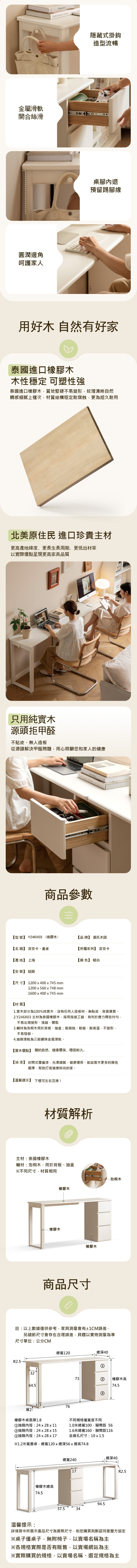 *注意:以下為情境示意圖,實際商品款式為百安卡奶油風橡膠木實木書桌附抽屜櫃1.2M Y246X03
