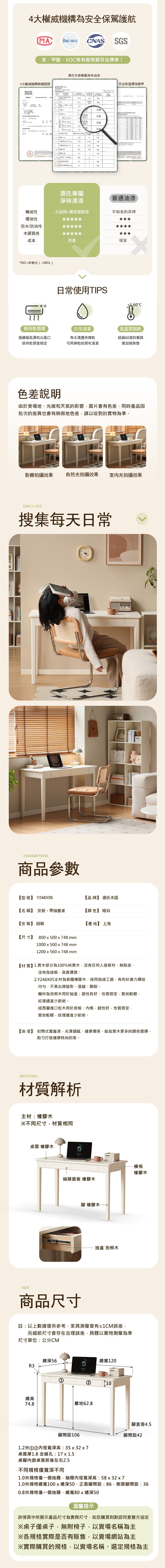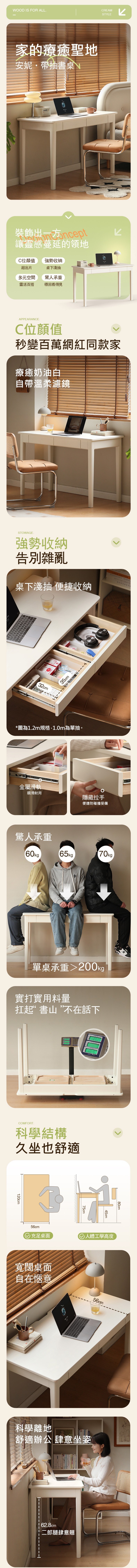 *注意:以下為情境示意圖,實際商品款式為安妮奶油風橡膠木實木單抽書桌1M Y246X05