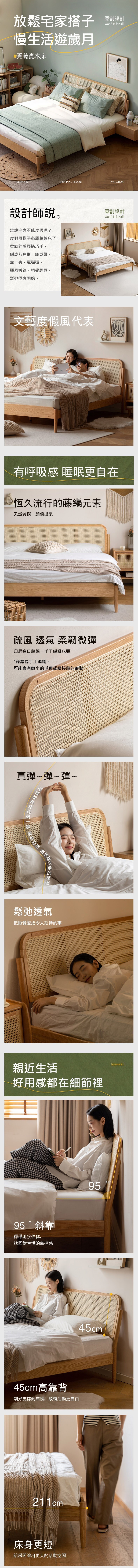 *注意:以下為情境示意圖,實際商品款式為覓藤橡木實木原木色藤編雙人床架150X200 Y49B01