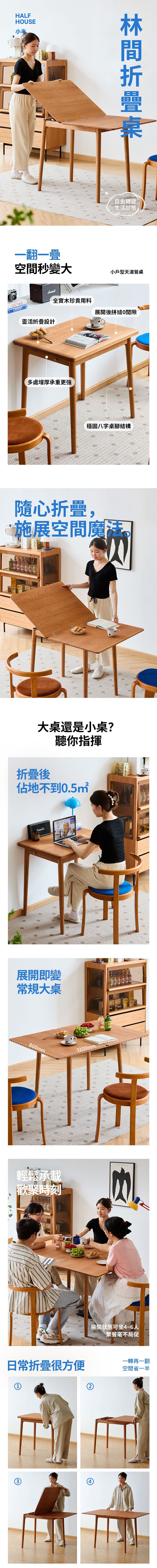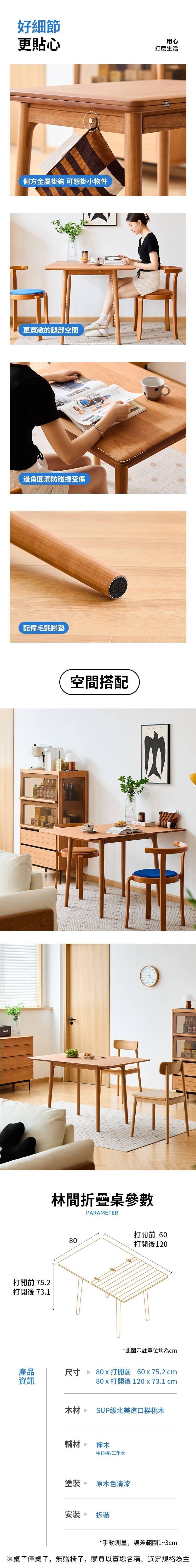 *注意:以下為情境示意圖,實際商品款式為林間櫻桃木實木折疊餐桌1.2M