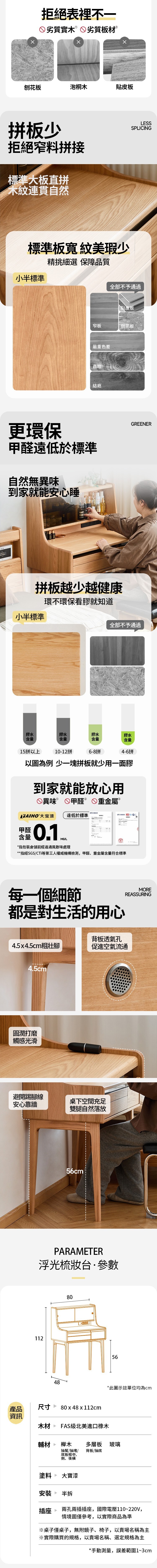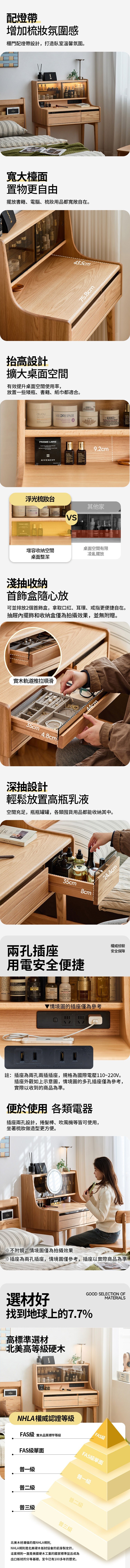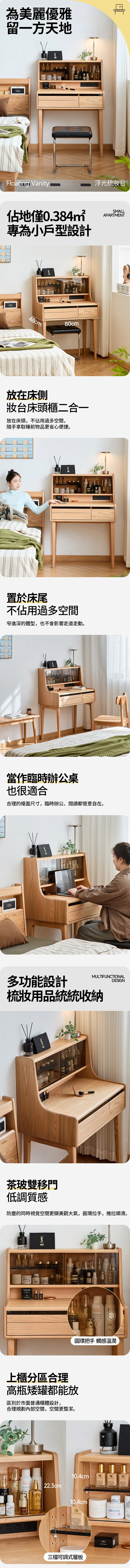 *注意:以下為情境示意圖,實際商品款式為浮光橡木實木原木色化妝桌(不帶鏡)台規電壓插座