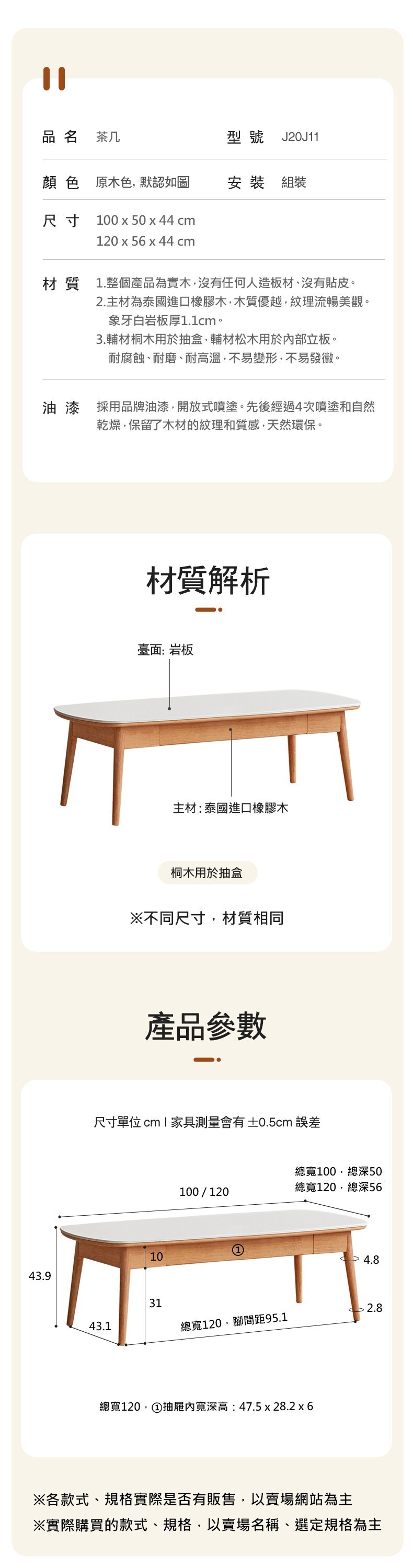 *注意:以下為情境示意圖,實際商品款式為原木日式有朋橡膠木實木原木色岩板茶几1M J20J11