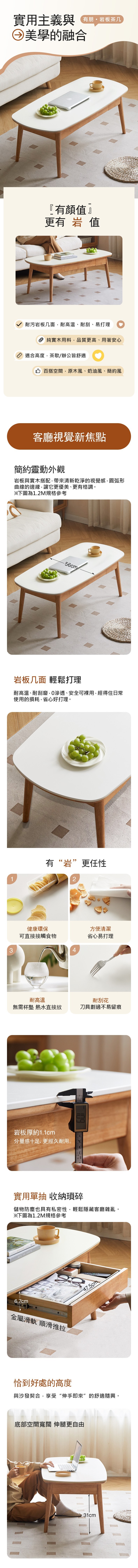 *注意:以下為情境示意圖,實際商品款式為原木日式有朋橡膠木實木原木色岩板茶几1.2M J20J11