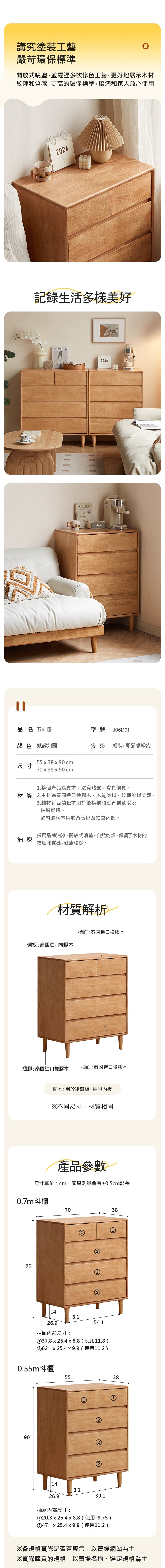 *注意:以下為情境示意圖,實際商品款式為原木日式格里橡膠木實木原木色五斗櫃0.7M J06D01