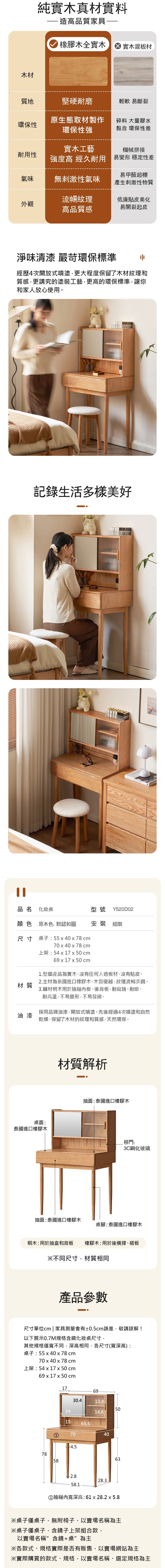 *注意:以下為情境示意圖,實際商品款式為原木日式慕顏橡膠木實木原木色含鏡化妝桌0.55M Y520D02