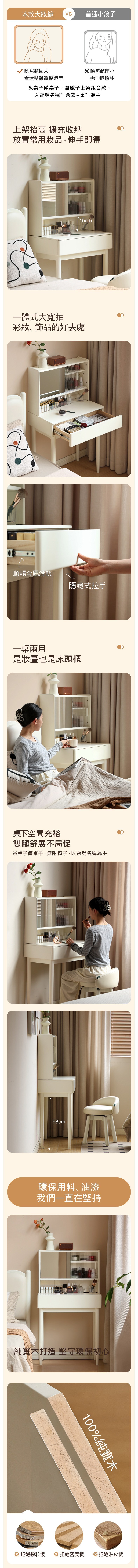 *注意:以下為情境示意圖,實際商品款式為原木日式奶油風慕顏橡膠木實木含鏡化妝桌0.55M Y516D02