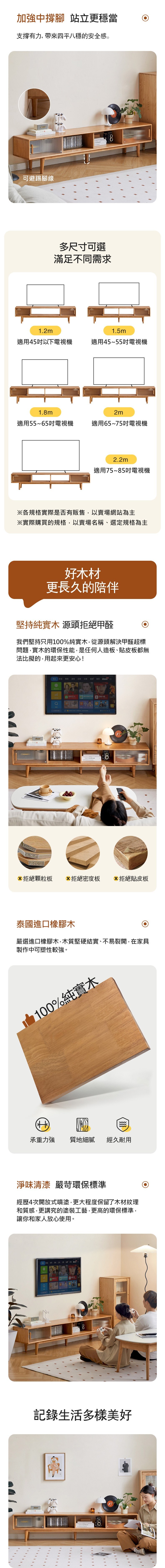 *注意:以下為情境示意圖,實際商品款式為原木日式巧伴橡膠木實木原木色電視櫃2.2M Y520N02