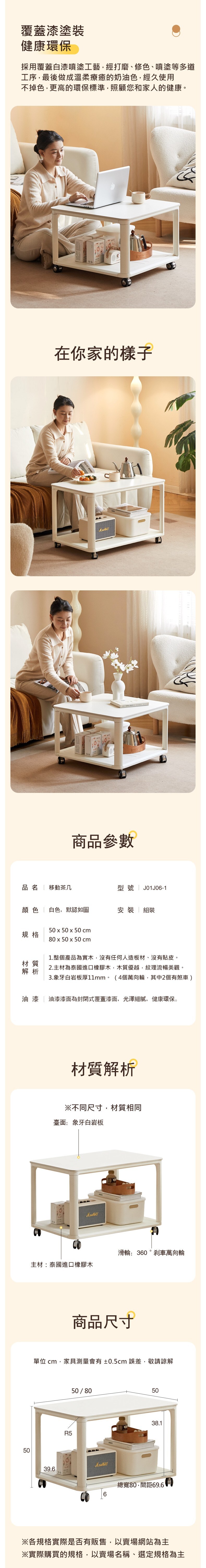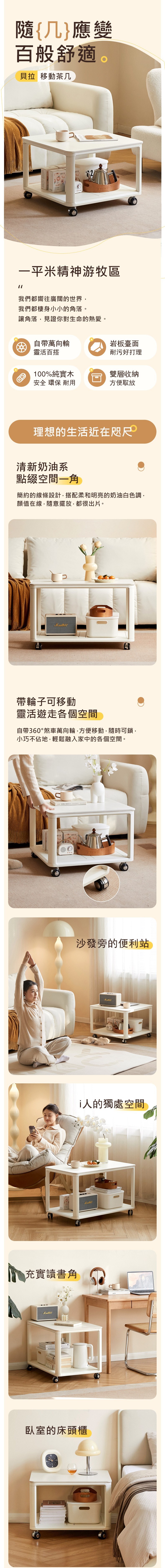 *注意:以下為情境示意圖,實際商品款式為原木日式奶油風貝拉橡膠木實木移動茶几0.5M J01J06-1