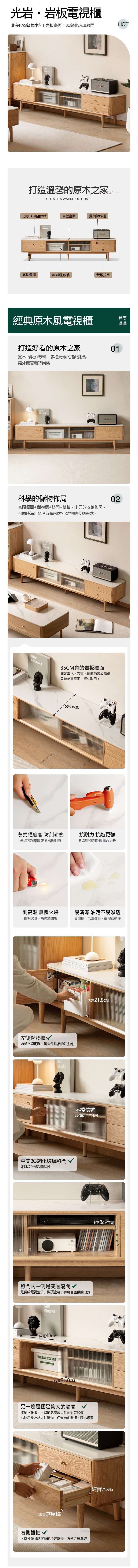 *注意:以下為情境示意圖,實際商品款式為光岩橡木實木原木色岩板電視櫃1.5M Y150N01