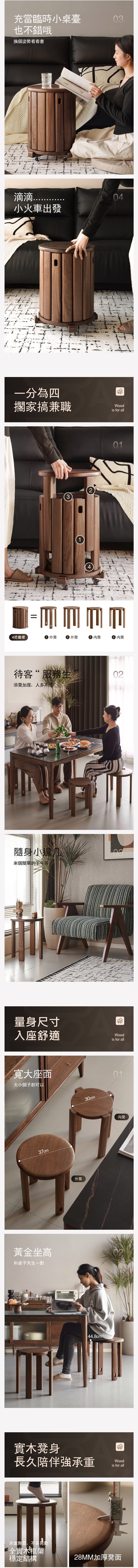 *注意:以下為情境示意圖,實際商品款式為橡膠木實木胡桃色邊几堆疊圓凳4件組(含滾輪底座) H245T02