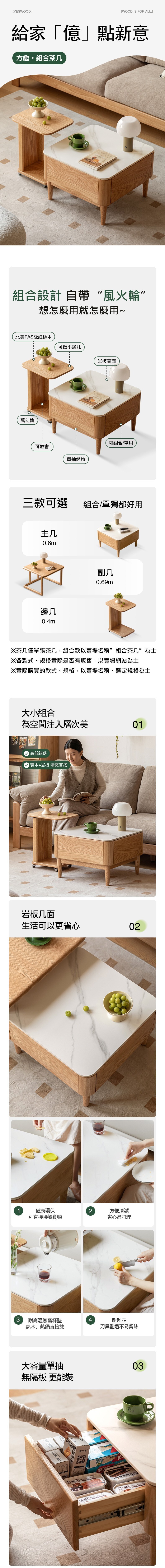 *注意:以下為情境示意圖,實際商品款式為方趣橡木實木原木色岩板茶几0.6M Y28J05