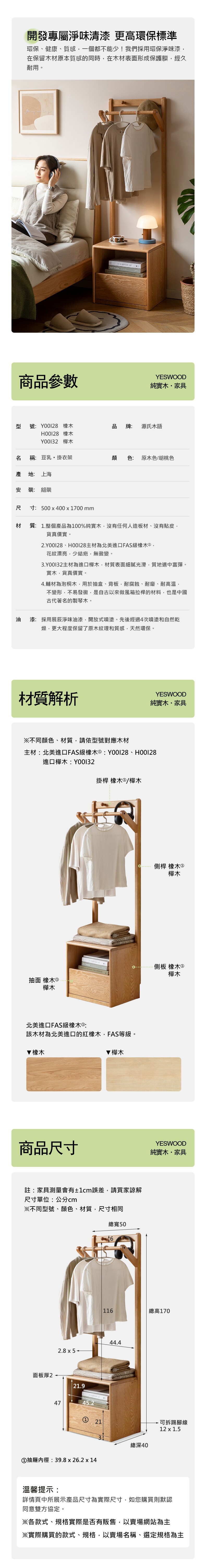 *注意:以下為情境示意圖,實際商品款式為豆乳奶油風實木床頭櫃掛衣架0.5M Y00I32