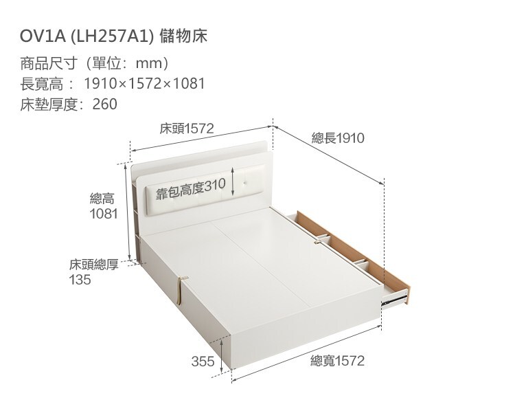 適用床墊尺寸 : 寬 150 X 長 190 CM