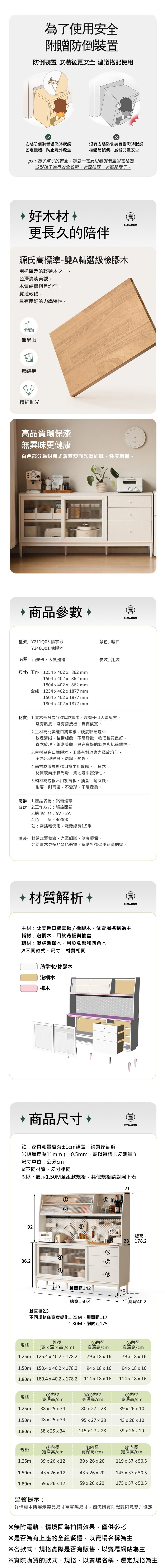 *注意:以下為情境示意圖,實際商品款式為百安卡奶油風橡膠木實木洞洞板餐櫃1.8M(無電軌) Y246Q01