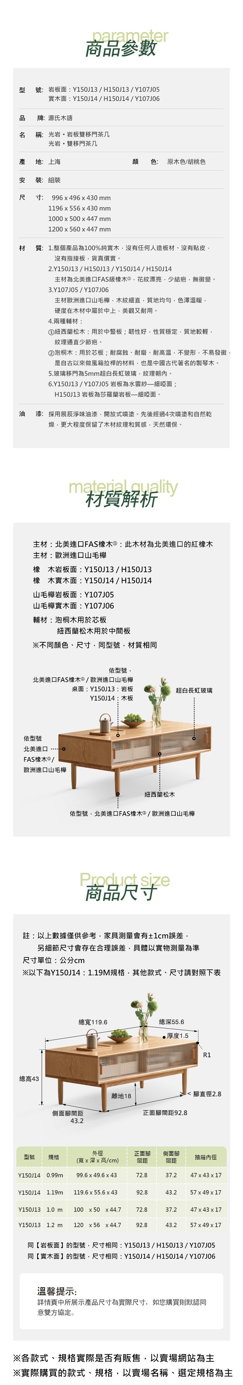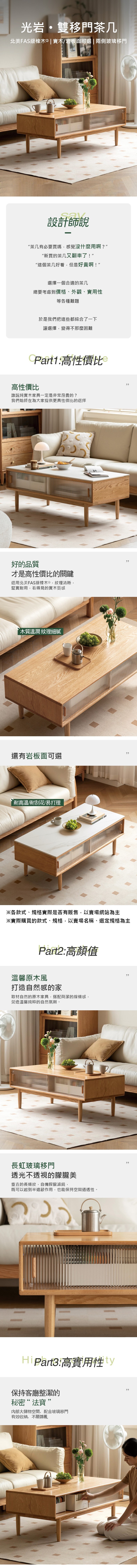 *注意:以下為情境示意圖,實際商品款式為光岩山毛櫸實木移門岩板茶几1M Y107J05
