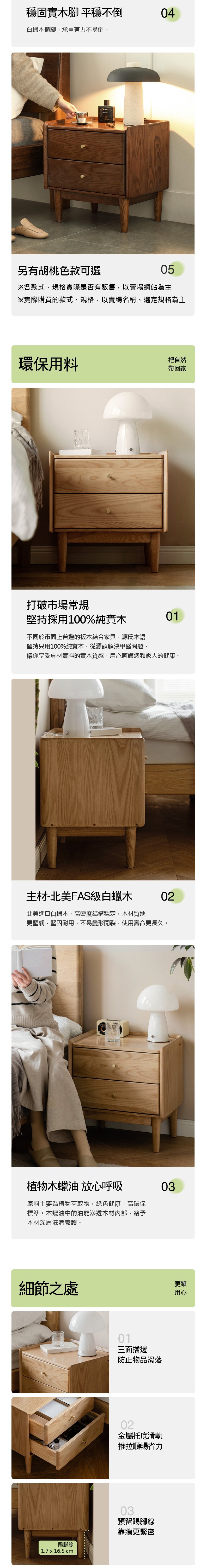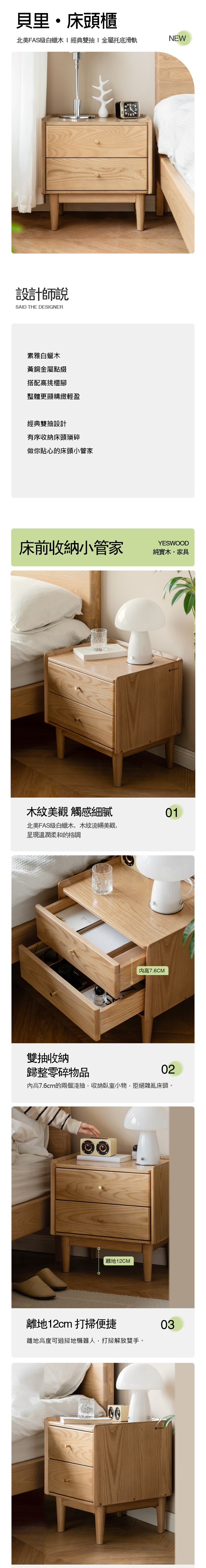 *注意:以下為情境示意圖,實際商品款式為貝里白蠟木實木原木色雙抽床頭櫃0.45M Y154A01