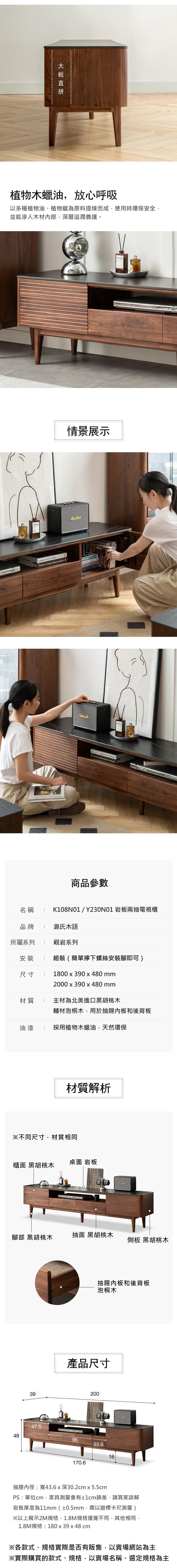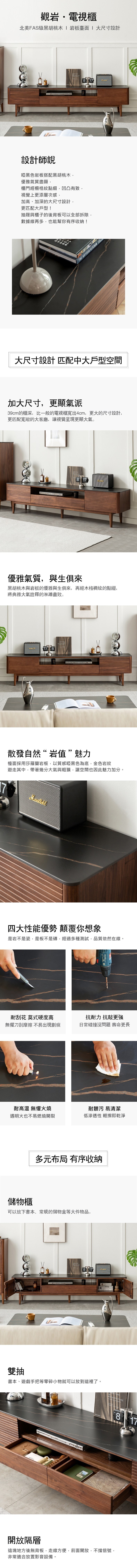 *注意:以下為情境示意圖,實際商品款式為觀岩黑胡桃木實木黑岩板雙門雙抽電視櫃1.8M K108N01