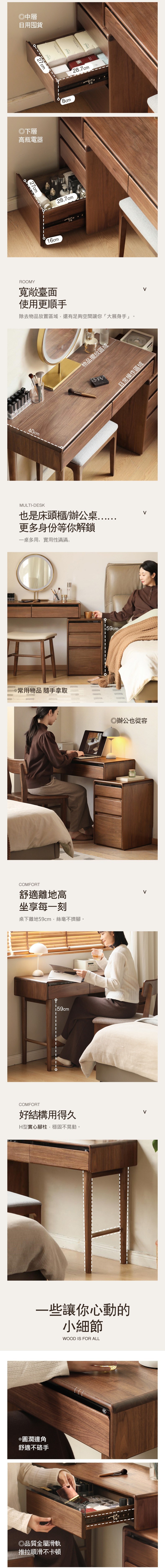 *注意:以下為情境示意圖,實際商品款式為黑糖黑胡桃木實木伸縮化妝桌櫃組 0.8M K35D09