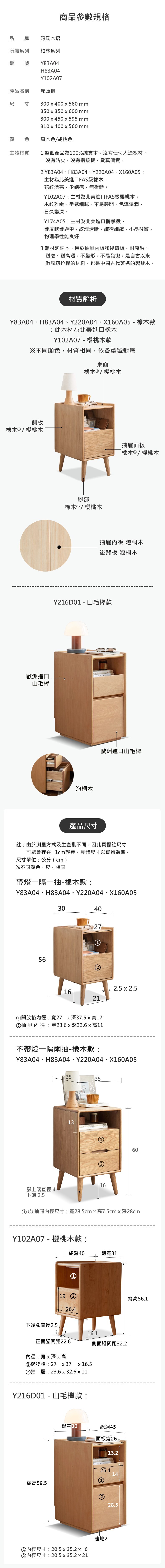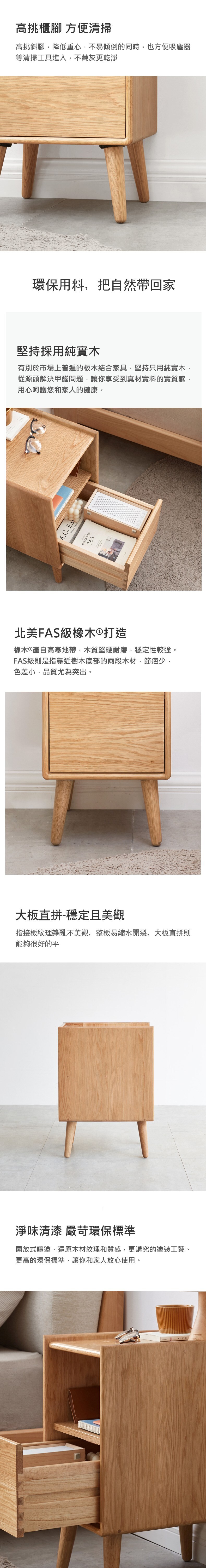 *注意:以下為情境示意圖,實際商品款式為柏林橡木實木原木色單抽1格床頭櫃0.3M(無燈款)Y83A04