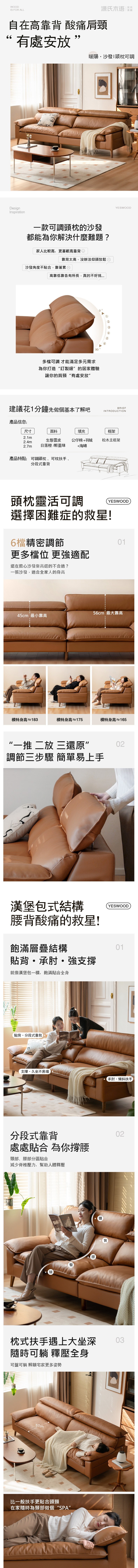 *注意:以下為情境示意圖,實際商品款式為暖陽可調頭枕生態雲皮三人座皮沙發2.1M S03124 日落澄