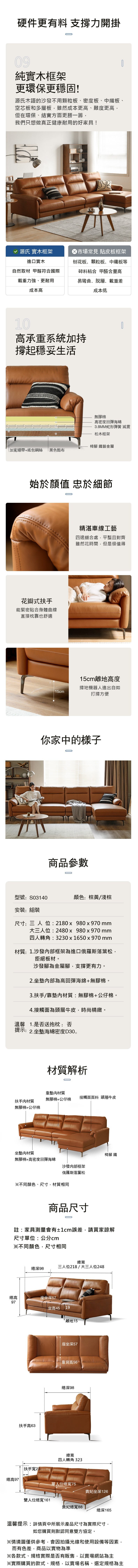 *注意:以下為情境示意圖,實際商品款式為日暮頭層牛皮三人座皮沙發 S03140 棕黃
