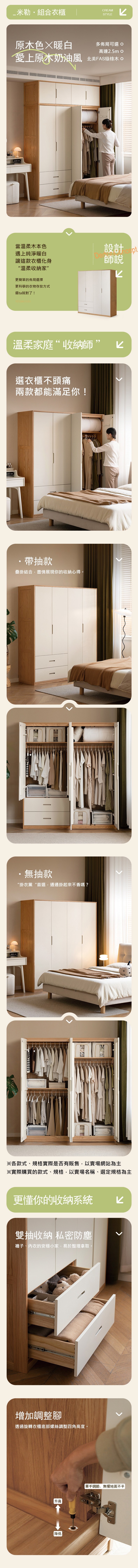 *注意:以下為情境示意圖,實際商品款式為米勒橡木實木原木拼色2門拉門衣櫃 Y00E28 A款